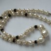 collier et boucles d'oreilles pour oreilles percées assortis en petites perles grises et noires.