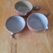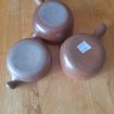 Type: Vente3 Poêlons en terre cuiteDiamètre 10,5 cm2 de Hauteur 5,5 cm1 de Hauteur 3,5 cmBon étatNe comporte ni fissure ni éclatEnvoi possiblePrix : 12 € PartagerCatégories: Brocante > Vaisselle BrocanteActualisé + de 3 mois