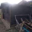 Abri de jardin en bois de dimensions : Côté 1 : 360 cm Côté 2 : 482 cm Hauteur : 190 / 236 cm Toit composé de dalles en caoutchouc goudronnés Structure interne est en composée de dalles résineuses d'une largeur de 8 cm au plafond et au sol. Poteaux bois fixés sur dalle en béton Réparations à prévoir