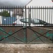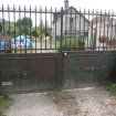Ancien portail en fer forgé avec 2 vantaux tôlés. Tôlé en partie basse sur une hauteur d'1 mètre sécurisant en partie haute avec barreaux 1/2 rond terminés par de belles pointes de flèches. Cadre extérieur en fer carré. Vendu dans son jus avec gonds et supports axes. (6ème photo) Orné dans la partie basse de 2 losanges imbriqués en relief sur tôle extérieure. Nécessité enlèvement sur place vu le poids. A débattre. largeur hors gonds 1,75 x 2 = 3,50 m hauteur totale = 2,08 m