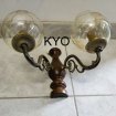 Vends une applique murale double : - Matières : verre et bois. - Type d'ampoule : Culot à vis E14. Ampoules Non fournies. - Type d'alimentation : 230 V. - Fixations au mur avec l'attache à l'arrière de l'applique. Crochet mural et vis Non fournis. - Dimensions : Longueur 30 cm, Profondeur 20 cm, Hauteur 22 cm. - Hauteur de chaque verre : 12 cm. - Etat : état neuf car très peu utilisée.