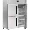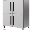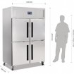 Armoire réfrigérée positive avec 4 portes en inox. A destination des métiers de bouche (commerce alimentaire, snacks, pizzerias, hôtels, restaurants,traiteurs...) Cette armoire frigorifique dispose d'un excellent rapport qualité / prix. Possède des roulettes , un compresseur puissant et un dégivrage automatique. Vous pourrez ainsi stocker tous vos produits frais sans rompre la chaine du froid. Idéale pour séparer vos produits dans les 4 chambres.