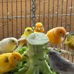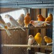 11 canaris à vendre : 10 mâles chanteurs et 2 femelles. Parmi eux, 4 mâles de couleurs variées (beige/jaune foncé), 2 mâles (plutôt jaunes avec quelques touches de beige) et 4 canaris verts/bruns (1 femelle et 3 mâles), ainsi qu'une femelle vert/brun clair. 30 £ chacun. Tous les oiseaux sont nés en 2025.
