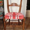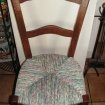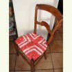 Pièce unique. Chaise dont la structure est en noyer, traitée et teintée. L'aasise, personnalisée, puisque tresséé en tissu par mes soins, elle est aussi solide et tendue que la paille , le tissu est traité anti-tache et n'a plus besoin de galette. Contact : 06 35 29 91 26