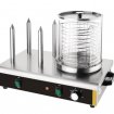 Appareil à hot dog 4 plots en acier inoxydable. Vos saucisses sont maintenues au chaud dans le cylindre en verre selon le système du bain-marie. Conçu pour un usage intensif, ce chauffe-saucisses permet de garder les saucisses à la bonne température pour servir vos clients.