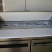 Comptoir de préparation réfrigéré grande capacité avec zone gastronorme. Extérieur et couvercle isolant en acier inoxydable. Contrôle entièrement automatique et affichage numérique constant. Fourni avec 2 grandes étagères (425mm x 538mm).