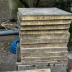 Environ 70 dalles sur plot 50x50x50 cm en béton grenaillé en très bon état (non ébréchées) Quelques coupes également disponibles Plots tous disponibles