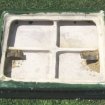 Vends Dessus de Poêle en faïence ancien (début XXe siècle). Céramique de couleur verte. Dimensions : Longueur maximum = environ 54,5 cm ; Largeur maximum = environ 42,5 cm ; Longueur intérieure d'encastrement = environ 43 cm ; Largeur intérieure d'encastrement = 31 cm environ ; Epaisseur maximum = 8 cm. Ce plateau porte à l'intérieur les inscriptions suivantes : Vitry-le-F (pour Vitry-le-François) et Déposé. Il porte également la référence A404. Ce dessus de poêle est en état d'usage correct : il n'est ni cassé ni fêlé, mais présente toutefois quelques éclats sur les bordures. Prix : 60 €. A prendre sur place, dans les Yvelines. Contact de préférence par Téléphone.
