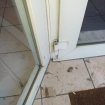 Modèle 2 : cloison vitrée alu gris avec porte et poignée PVC noir Dimensions hors-tout : L186 x H280 cm (à confirmer) Dimensions de l'ouvrant : à vérifier sur place 400 € HT