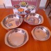 Ensemble de 4 saladier rond en Inox N° 1 Diamètre 18 cm ; Profondeur 4,5 cm N° 2 Diamètre 17,5 cm ; Profondeur 5,5 cm N° 3 Diamètre 16 cm ; Profondeur 3,5 cm N° 4 Diamètre 14 cm ; Profondeur 3 cm Envoi possible Frais de port gratuit par mondial relay