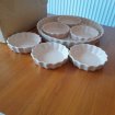 Ensemble Plat à tarte en grès et 6 plats individuels Diamètre Grand plat à tarte : 28 cm ; Profondeur 3,5 cm Diamètre Plats à tarte individuels : 12 cm ; Profondeur 2,5 cm En Parfait états , Article neuf Ne comportent ni fissures , ni éclats Envoi possible