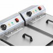Friteuse électrique professionnelle triphasée en 400 Volts, avec 2 bacs de 16 Litres en inox et équipée de vannes de vidange. Chaque résistance fournie une puissance de 6000 Watts. Avec ses 2 prises en triphasé, chaque cuve fonctionne de manière indépendante. Avec cette friteuse vous pourrez ainsi assurer votre service sans difficulté, même avec une forte affluence, grâce à sa rapidité de cuisson !