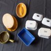 - 2 terrines blanches rectangulaires 13,5 x 10 cm, de poids 570 g, avec couvercle percé d'un orifice et surmonté d'un bouton pour l'enlever facilement.