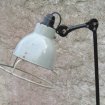 Vends Lampadaire industriel de garage. Cette lampe vintage est de construction entièrement métallique. Elle date des années 50, et servait dans un atelier de carrosserie automobile. Ce luminaire est de fabrication artisanale : il a été assemblé à partir de certains éléments d'une lampe Gras-Ravel, notamment le système d'articulation sur rotule. Il mesure environ 156 cm de hauteur (lorsque le bras le plus long est déployé à la verticale). Son socle en fonte est suffisamment lourd pour lui assurer une bonne stabilité. Il est équipé de roulettes. Ce lampadaire est en bon état de fonctionnement et de présentation : la partie électrique a été remplacée ; certains éléments ont été repeints. Le socle est resté dans son jus. Ce luminaire est rare. Il est idéal pour une décoration sur le thème industriel. Prix : 400 €. A prendre sur place dans les Yvelines. Tél. : 01.30.90.88.17.