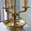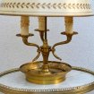 Très belle lampe bouillotte à trois feux,en bronze doré style empire, Son socle en forme de coupelle très richement ciselé. Cette Magnifique lampe bouillotte est entièrement fabriquée en bronze traditionnel fondu au sable et patinée à la main. Support abat jour coulissant et réglable en hauteur( Vision, Lecture, Ambiance) par une clé, abat-jour Empire en métal Laqué. Posée au coin d'un canapé ou sur une table d'appoint, cette lampe sera la complice de vos soirées de lecture. Une petite touche lumineuse qui se mariera aisément dans un salon. tél : 07 65 18 14 70