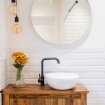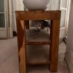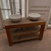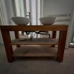 Meuble double vasque en bois massif de dimensions L120 x l50 x H79 cm Essence de bois : exotique à confirmer Manque 1 robinet