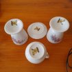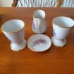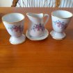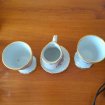 Petit Service à Thé ou café en Porcelaine Décors de Paris Couleur : Blanc décor floral , dorure fine Hauteur Mazagrans : 8,5 cm ; Diamètre : 6 cm Hauteur Pichet à lait : 8 cm Diamètre soucoupe : 8 cm Bon état Ne comporte ni fissure ni éclat Envoi possible