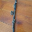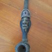 Pipe artisanal en Bambou,résine , Argile, à double tirage Serpent Cobra entourant le tube ,décaration de feuille et pierre précieuse sur le foyer Tete Africaine sur le tuble Longueur : 31 cm Bon état Ne comporte aucun éclat , ni fissure Envoi possible