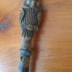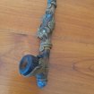 Pipe artisanale ethnique Chouette en Bambou , argile,Résine et pierre naturelle La pipe est décoré de 2 Feuilles l'entourant La partie Tubé comporte une pierre naturelle sur le bout et une chouette sur le dessus Longueur : 15 cm Bon état Ne comporte aucun éclat , ni fissure Envoi possible