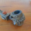 Pipe artisanale ethnique Main en Bambou , argile,Résine et pierre naturelle La pipe est tenu par une main La partie Tubé comporte deux pierre naturelle avec une feuille en décoration et forme comme un chapeau Longueur : 22 cm Bon état Ne comporte aucun éclat , ni fissure Envoi possible