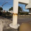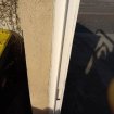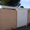 Portail coulissant 150 x H196 x 5 cm fixés sur 3 poteaux coudés boulonnés sur platine de hauter 33 cm Panneau supérieur 306 x 119 cm