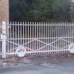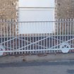 Portail métallique barreaudé coulissant en 2 battants Longueur totale : 10,1 m Hauteur : 169 cm (piques comprises, 158 cm sans) Longueur d'un battant : 5,05 m Longueur de rail de chaque côté : 4 m