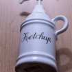 Vends 1 pot serveur très original à ketchup, en porcelaine blanche, de la célèbre marque REVOL . Il se pose sur la table, et chacun peut se servir. Il n'y a pas de cuillère, mais un bouton pressoir qui libère le ketchup quand on appuie dessus, ce qui est très hygiénique ! - Hauteur 19 cm. poids 225 g Etat neuf, jamais utilisé Si envoi, port de 5 € et règlement chèque ou virement