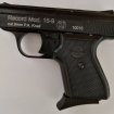 Données techniques: Marque : Record 15-9 Calibre : 9 mm PAK Capacité du chargeur : 5 coups + 1 Dimensions : 115 mm x 95 mm Poids : 380 grammes Sécurité de la glissière - version polie Sécurité de la gâchette Éjection automatique des cartouches Base antichoc en acier Plaquettes de crosse en plastique antidérapant Couleur : bruni Diamètre du filetage: 8 mm