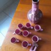 Service à Liqueur en grès- signé Gaubier Comprend : Une Carafe avec bouchon et 8 petits Verres Couleur : Rose Marbré de Marron Hauteur Carafe ( sans bouchon) : 18 cm Hauteur Verres : 4,5 cm - Diamètre : 3 cm Bon état Ne Comporte ni fissure , ni éclat Envoi possible