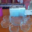 Service de table 7 pièces en verre transparent " Octa" Service Octogonal Comprend : - 1 Saladier : diamètre : 21 cm ; Hauteur : 8,5 cm ; Profondeur : 8 cm - 6 Ramequins : diamètre 10,5 cm ; Hauteur : 4 cm , Profondeur : 3,5 cm Bon état Ne comporte ni fissure , ni éclat Peut comporter d'éventuelles traces d'usures superficielles Envoi possible Frais d'envoi gratuit par Mondial Relay