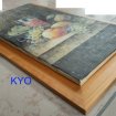 Vends ce beau tableau design : - Portrait : peinture sur toile d'un ensemble de fruits (raisin blanc noir, pêche, poire) posés sur une table, arrière-plan noir gris. - Suspension murale, décoration d'intérieur. - Ficelle placée au dos du tableau pour le fixer au mur de votre pièce. - Matières : peinture sur toile, cadre en bois laqué (vernis). - Couleurs : vert, noir, jaune, orange. Cadre beige marron bois. - Dimensions totales : Longueur 70,5 cm ; Largeur 41 cm ; Hauteur 3,5 cm.