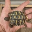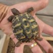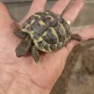 Je vends mes tortues Hermann nées en août dernier. En tres bonne santé .aime beaucoup les câlin et manger, gambader et dormir. J'ai prit plusieurs photos pour que vous puissiez les regarder au mieux. J'en ai même pris une dans ma main ( une main d'homme ) pour que vous voyez leurs grosseurs. Elles pèsent environ 70 grammes et mesures environ 7/8 cm. On cherche une famille sérieuse et accueillante pour nos tortues car elles vivent 100 ans. Prix d'une tortue : 50€