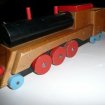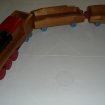 TRAIN EN BOIS composé de : 1 locomotive et de 2 wagons, longueur totale 83 cm Longueur de la locomotive 32 cm, largeur 7,5 cm, hauteur 11 cm Longueur wagon 22 cm, largeur 9 cm, hauteur 6 cm Poids total : 1, 635 kg Coloré, solide et belle finition A PRENDRE SUR PLACE