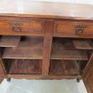 Superbe bahut haut, deux portes, deux tiroirs en merisier massif , coquille à la base, pieds escargot, panneauté sur les côtés, entièrement chevillé : portes, plateau, cotés ....quelques restaurations d'usage, bien faites. très belle patine.. Nettoyé, poncé, traité et ciré Dimensions : H : 134 cm , P : 66 cm , L : 150 cm Tiroirs : 56 x 52 x 12 cm