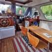 Jolie Vedette Hollandaise Tillekruiser de 1974, 12 m x 3,45 m, Moteur Diesel Fiat de 120 cv avec Keel Cooling, climatisation réversible qui sera révisée pour la vente, factures d'entretien disponibles (électricité…), 2 pompes de cale. Bel espace d'aménagement avec 2 cabines séparées, une à l'avant dans la pointe du bateau et la cabine principale à l'arrière avec un lit 120 cm x 190 cm. 1 salle de bain avec douche et lavabo, et 1 WC séparé. 2 postes de pilotages, 1 extérieur sur une grande terrasse avec bimini et 1 intérieur pour lequel il y a un joint à changer sur la barre. La cuisine est bien équipée avec une plaque de 4 feux gaz, 1 frigo, 1 congélateur, 1 micro-ondes, et 1 chauffe-eau électrique de 60 L. Il y a un petit rafraîchissement de peinture à prévoir mais le plan de sondage de la coque date de 2018.