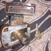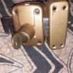 verrou double cylindre avec 1 clé Dimension du verrou : 6 x 9 cm Epaisseur : 2,5 cm Diamètre 23 mm Cylindre : 40 mm Le verrou fonctionne parfaitement Comporte des traces d'usures, traces de peinture Vis de fixation non fournis Vendu dans l'état Envoi possible
