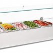 Vitrine réfrigérée à ingrédients réfrigérée en acier inox équipée de verres de protection. Idéale pour les pizzéria, ou tous types de restaurants. Avec cette saladette, vous pourrez ainsi conserver tous vos ingrédients au frais et à la bonne température. Indispensable pour respecter la chaîne du froid.